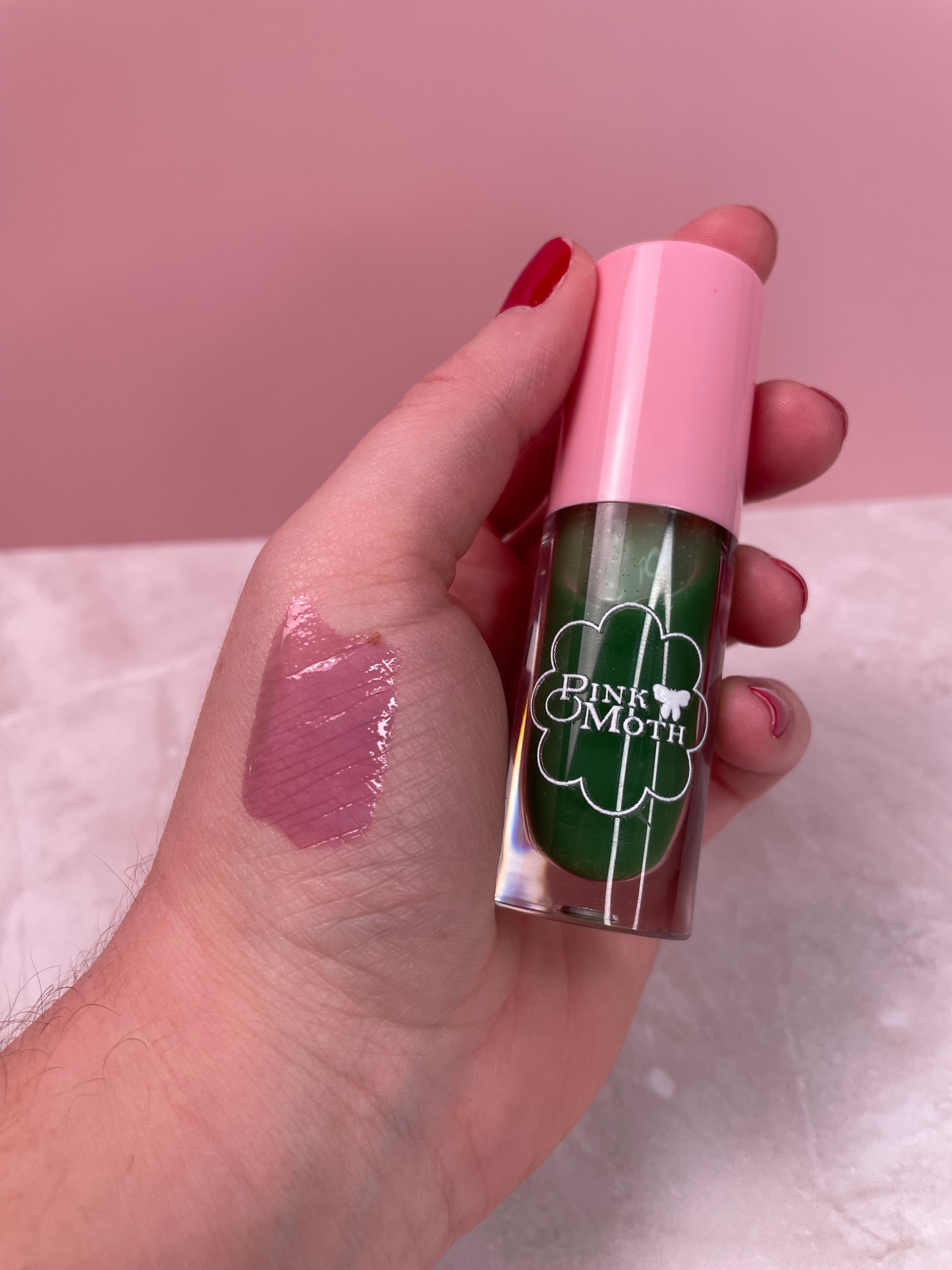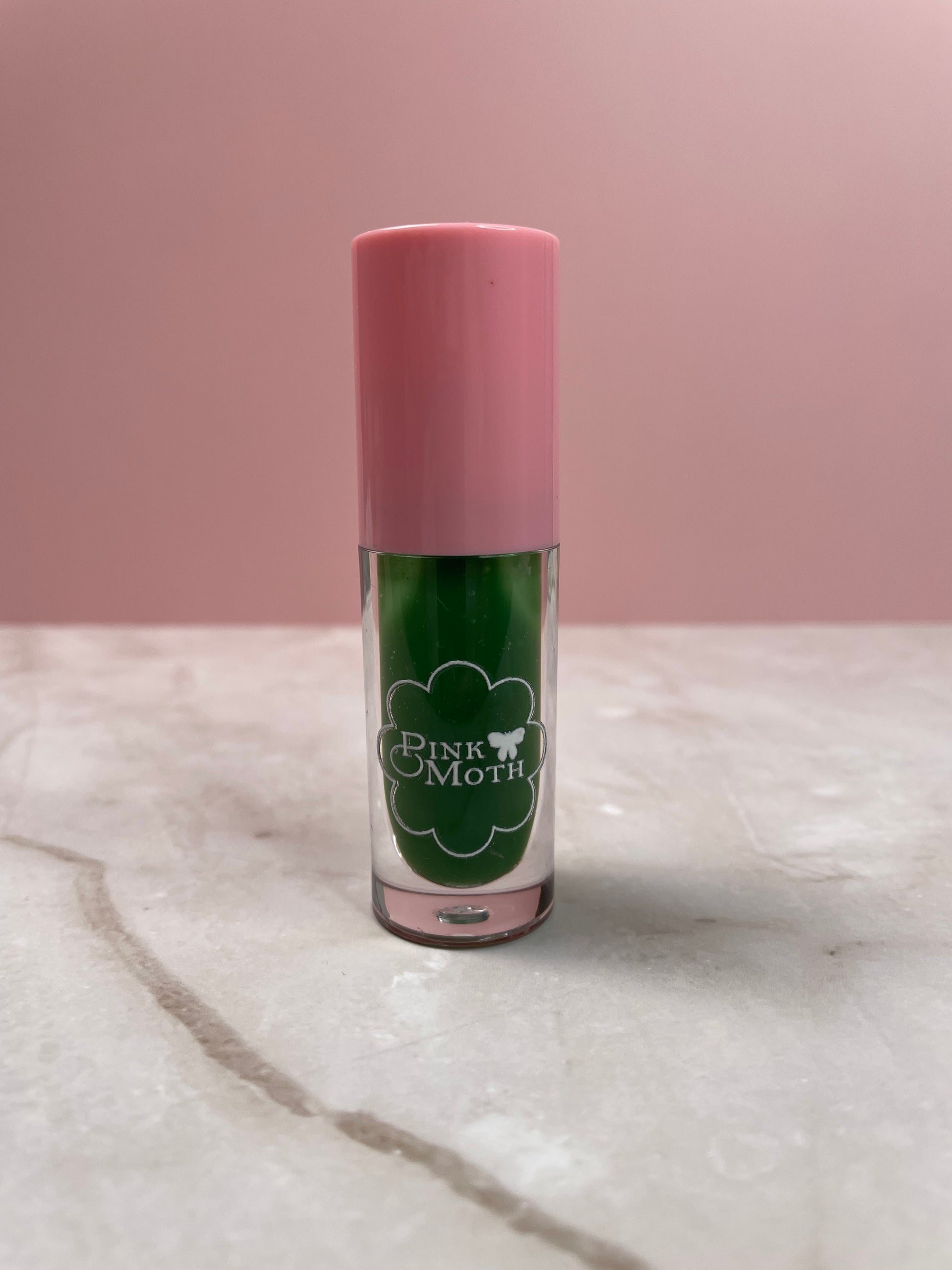 Our Grinch green color changing lipgloss. Turns a shade of pink based on your PH levels.